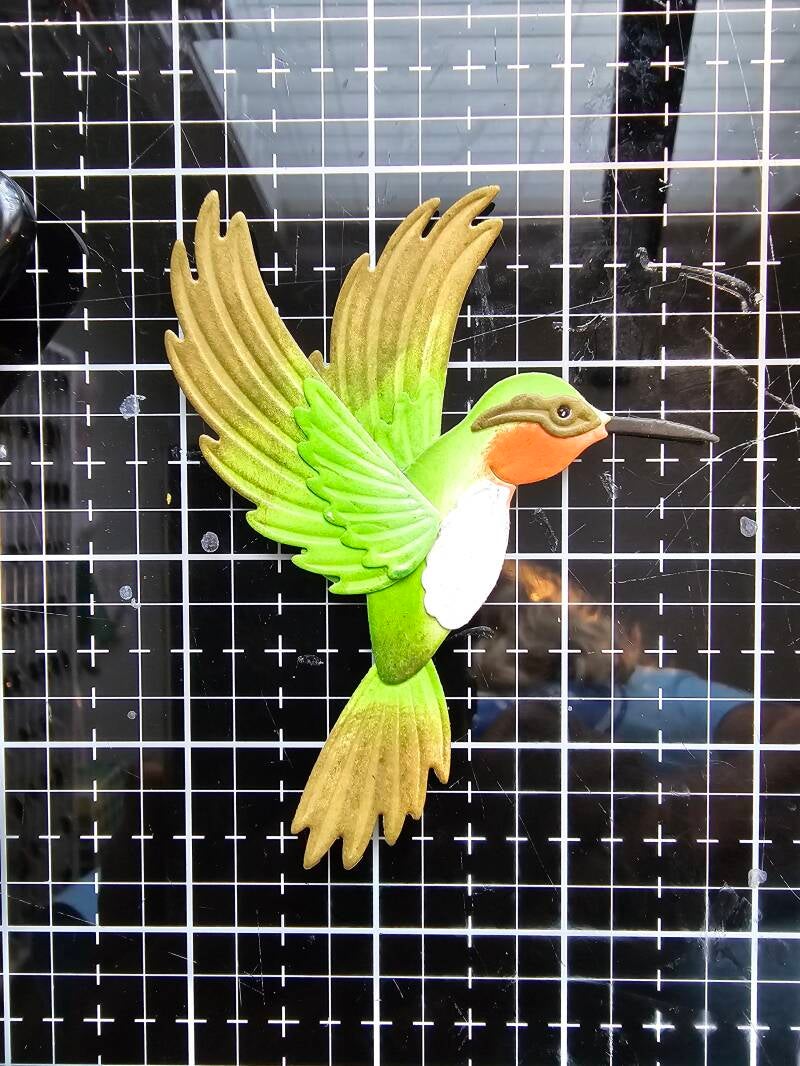 Finished bird. Spellbinders included two layers for each wing. I think this adds a lot of depth to the die cut. I added a small dot of Sakura White Gel Pen onto the black eye to make the bird seem more realistic.