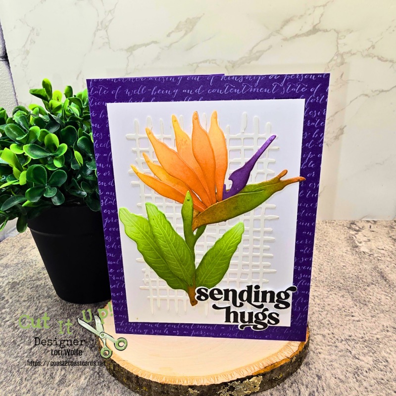Hello crafty friends!! Today, I'm on the Cut It Up Challenge Blog. This week's theme is makes you happy. When I was a little girl, growing up in Southern California, there were a lot of flowers around. My favorite was the bird of paradise. It was my mother's favorite, too. This flower makes me happy and also think of her. So, it was a no-brainer to create this card for our theme.