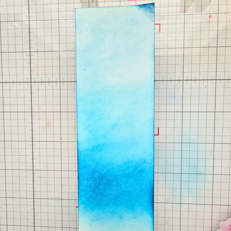 I ink blended a gradient of light blue to dark on a 2 1/2" piece of cardstock. I used Altenew inks and Gina K brushes.